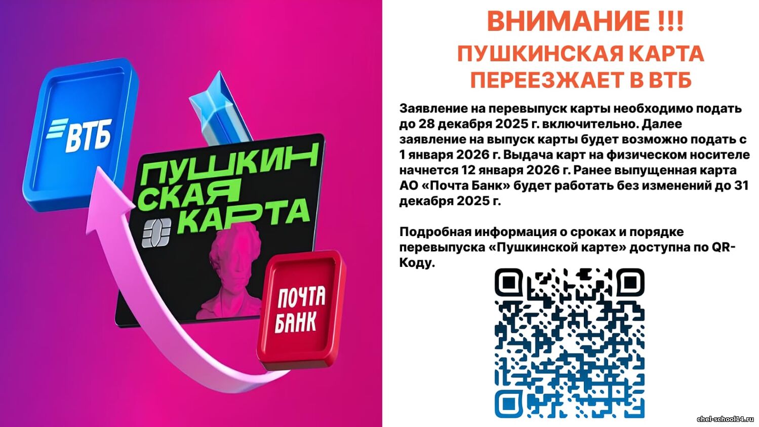 В связи с изменением с 1 января 2026 года банка-оператора программы «Пушкинская карта» (далее – Программа)