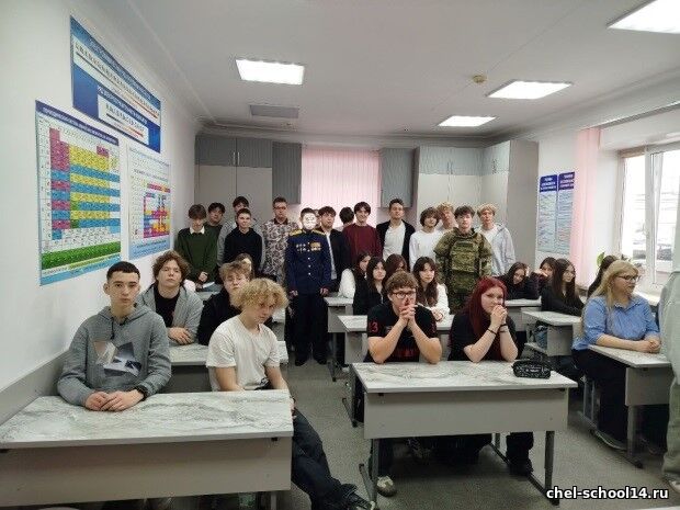 В рамках военно-патриотического воспитания обучающихся, профориентации военных специальностей 4 декабря 2025 г. в школе состоялась встреча обучающихся 10.11 классов с участником СВО, ныне курсантом ЧВВАКУШ.