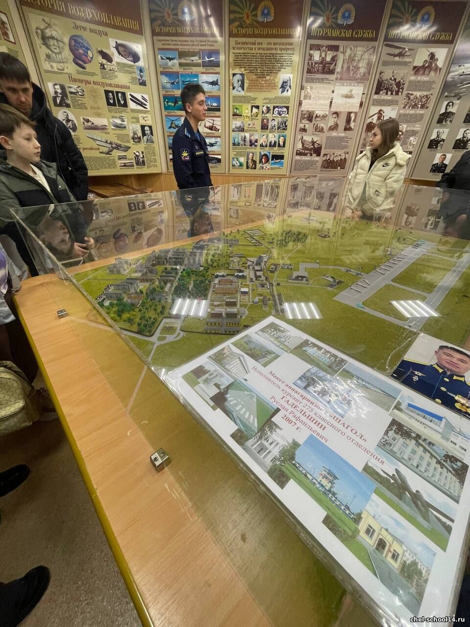Ребята посетили музей, ознакомились с историей учебного заведения, узнали о выпускниках, совершивших подвиги в годы ВОВ, ставших героями Советского Союза, России. В музее была представлена возможность подробно изучить элементы обмундирования штурманов.