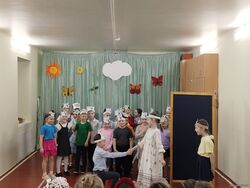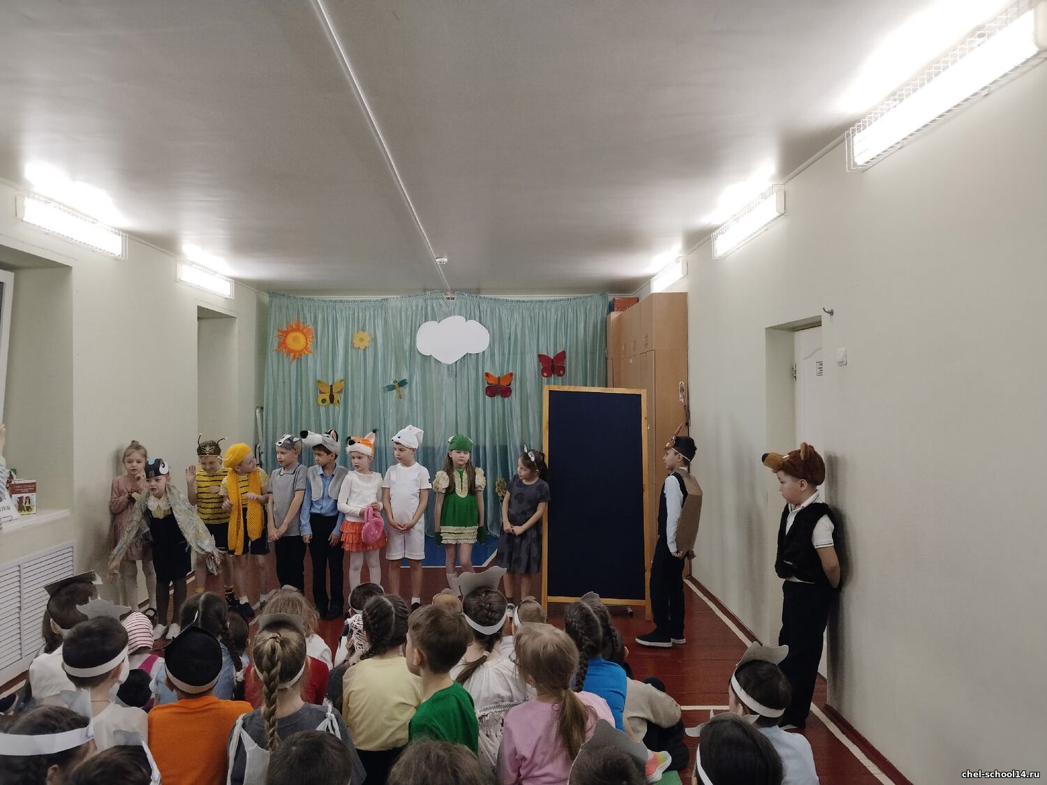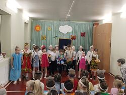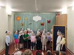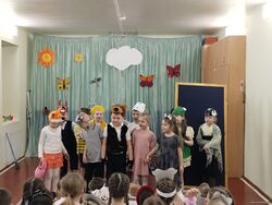 25 марта 2026 года в Неделю детской книги в начальной школе состоялся традиционный фестиваль детской книги «В гостях у сказки» для первоклассников. Ребята представили инсценировки по мотивам русских народных сказок: «Волк и коза» (1-а кл.), «Гуси-лебеди» (1-б кл.), «Теремок» (1-в кл.). Жюри высоко оценило первые театрализованные выступления ребят. 1-а, 1-б и 1-в классы награждены дипломами лауреатов фестиваля в номинации «Дебют».