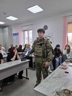 В рамках военно-патриотического воспитания обучающихся, профориентации военных специальностей 4 декабря 2025 г. в школе состоялась встреча обучающихся 10.11 классов с участником СВО, ныне курсантом ЧВВАКУШ.